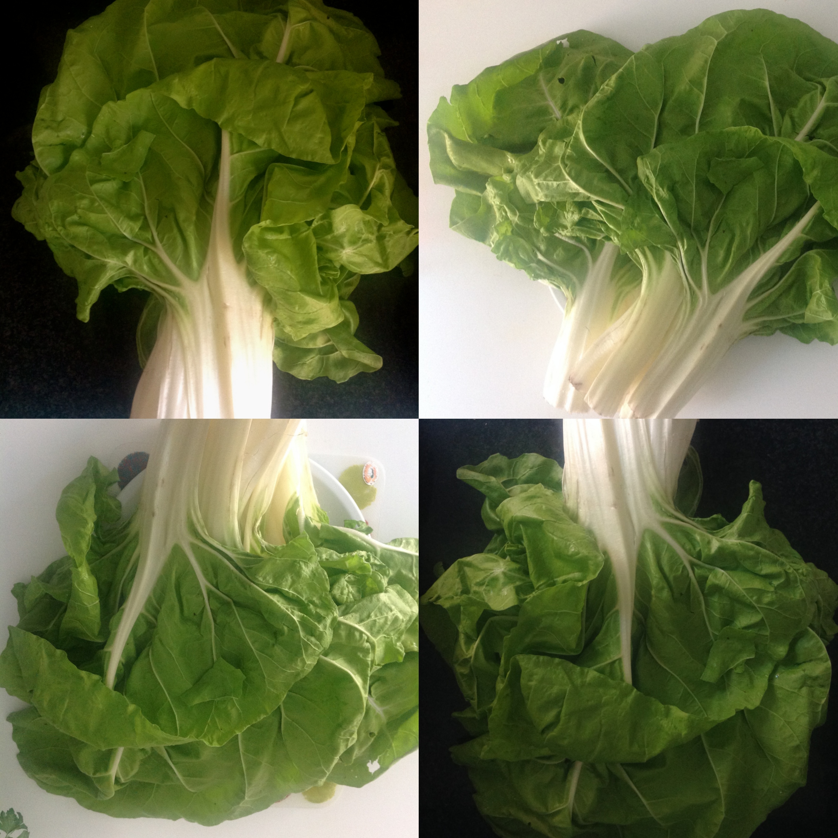 Pencas de acelgas rellenas de queso y tomate deshidratado.