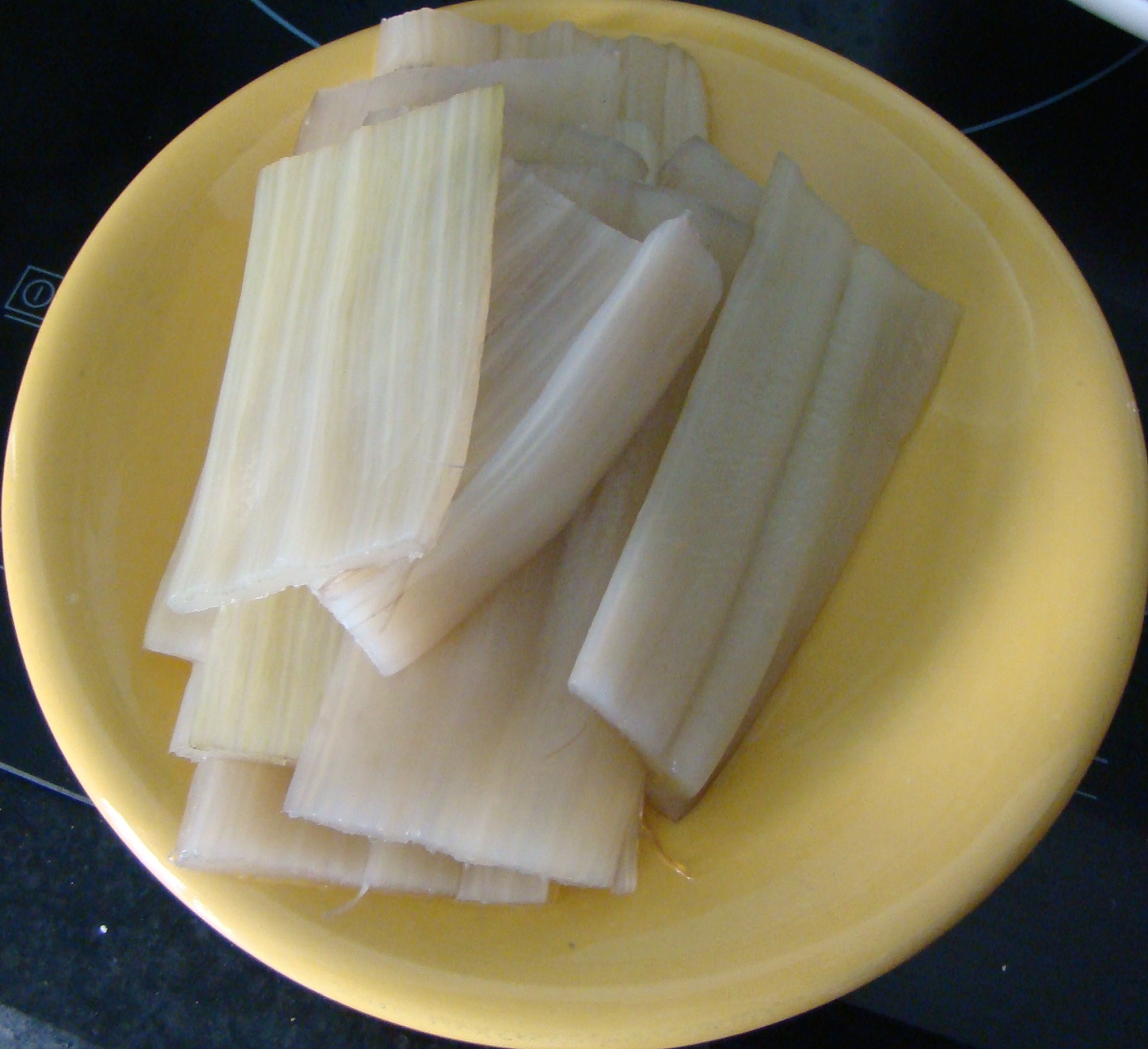 Pencas de acelgas rellenas de queso y tomate deshidratado.