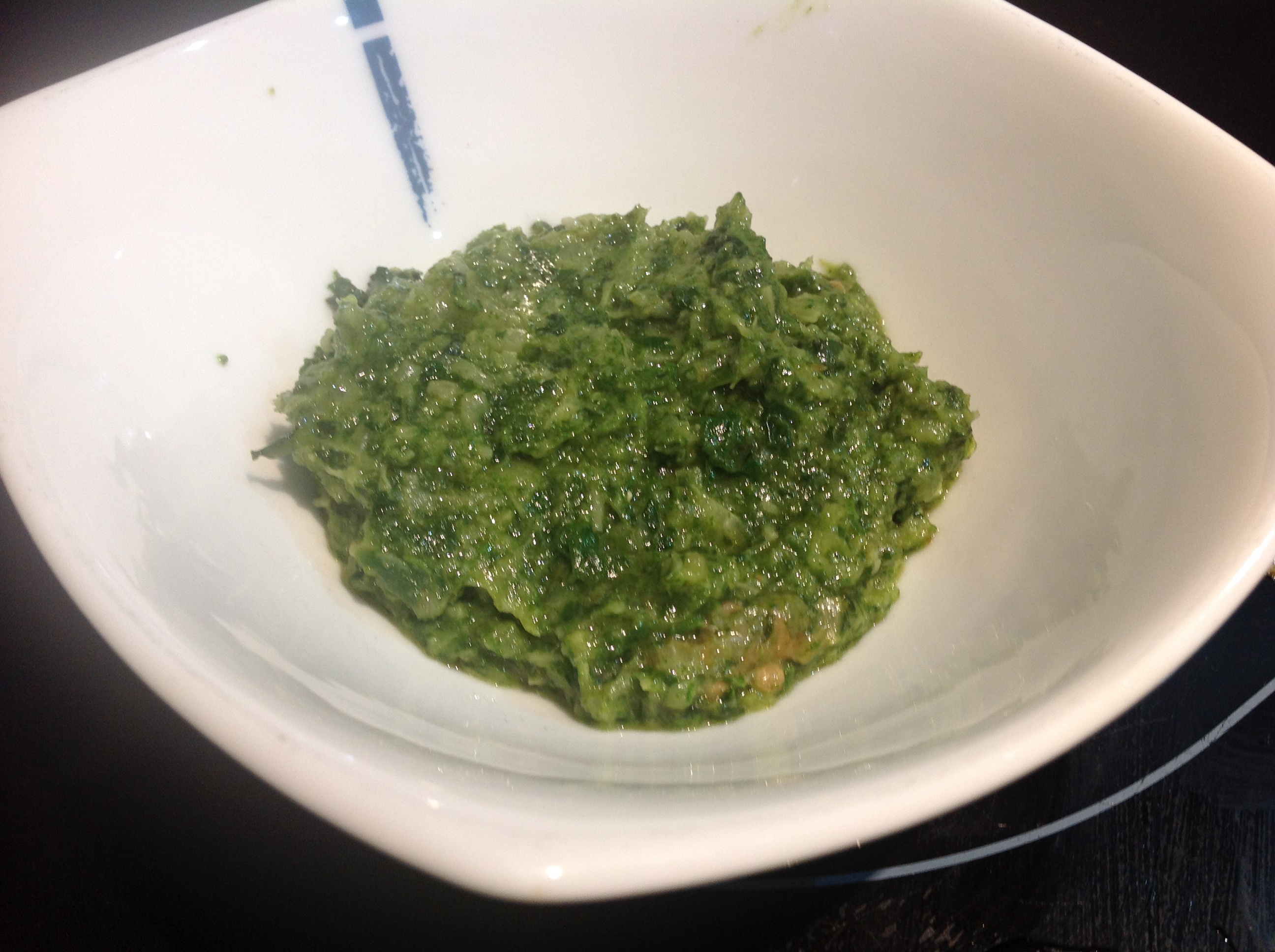 Pencas de acelgas rellenas de queso y tomate deshidratado.