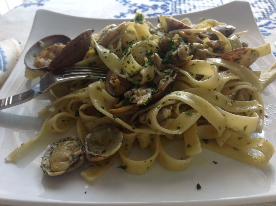 ← Tagliatelle alle vongole verace.