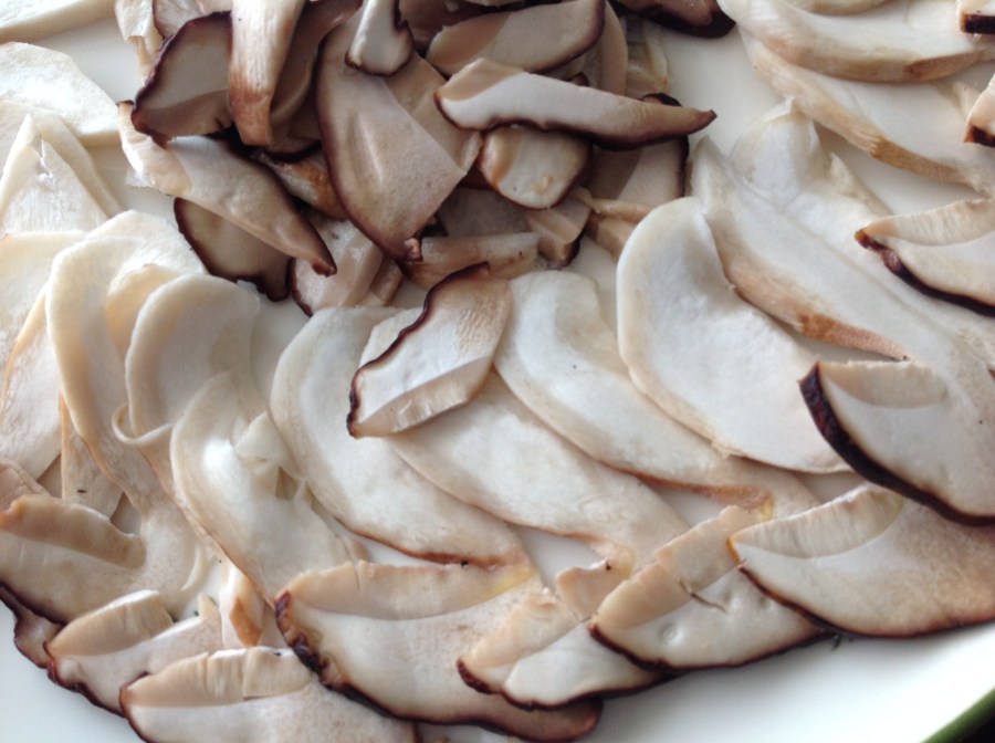 Carpaccio de boletus con piñones y queso manchego.