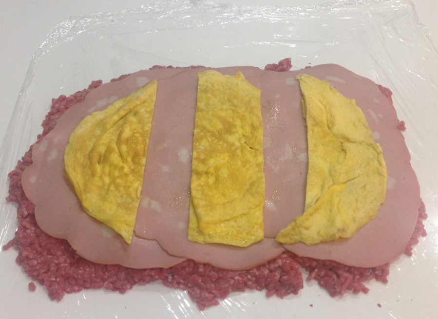Fiambre de carne picada con caramelo, mortadela de Bolonia y tortilla.