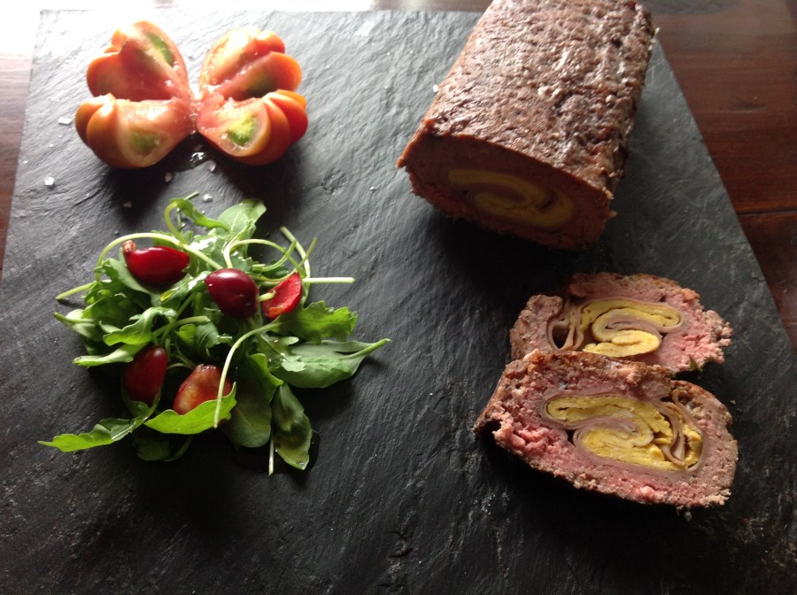 Fiambre de carne picada con caramelo, mortadela de Bolonia y tortilla.