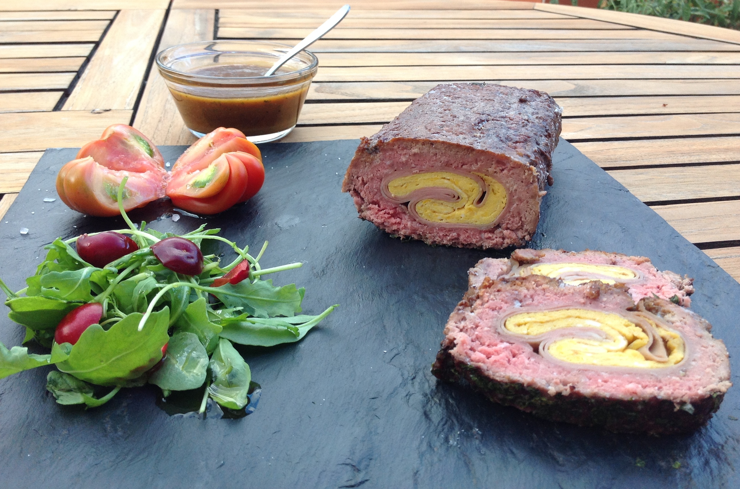 Fiambre de carne picada con caramelo, mortadela de Bolonia y tortilla.