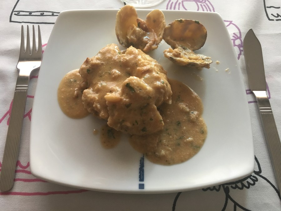 Rape con salsa de almendras .