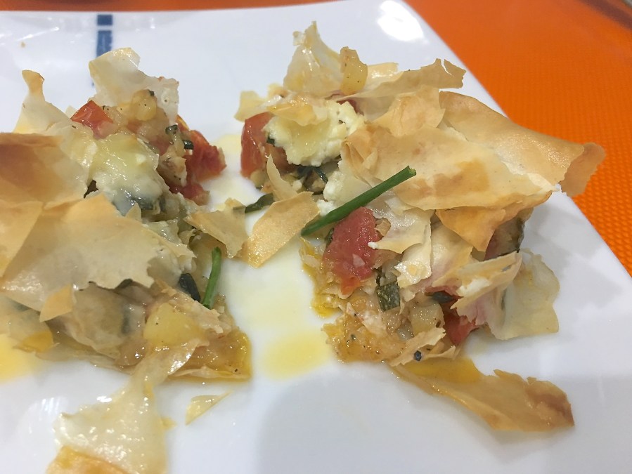 Crujiente de calabacín y queso de cabra.