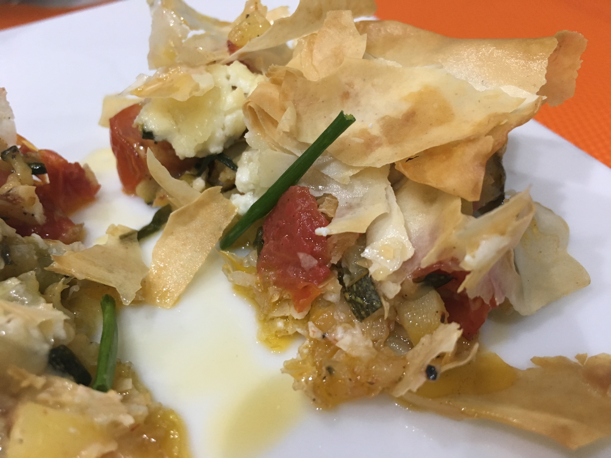Crujiente de calabacín y queso de cabra.