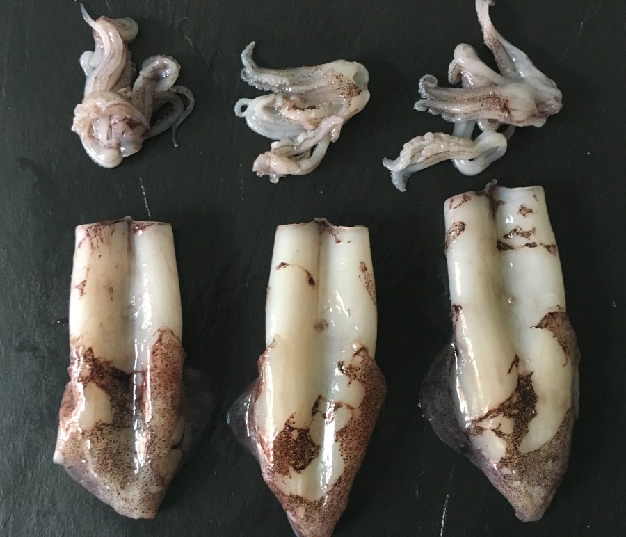 Chipirones rellenos en su tinta.