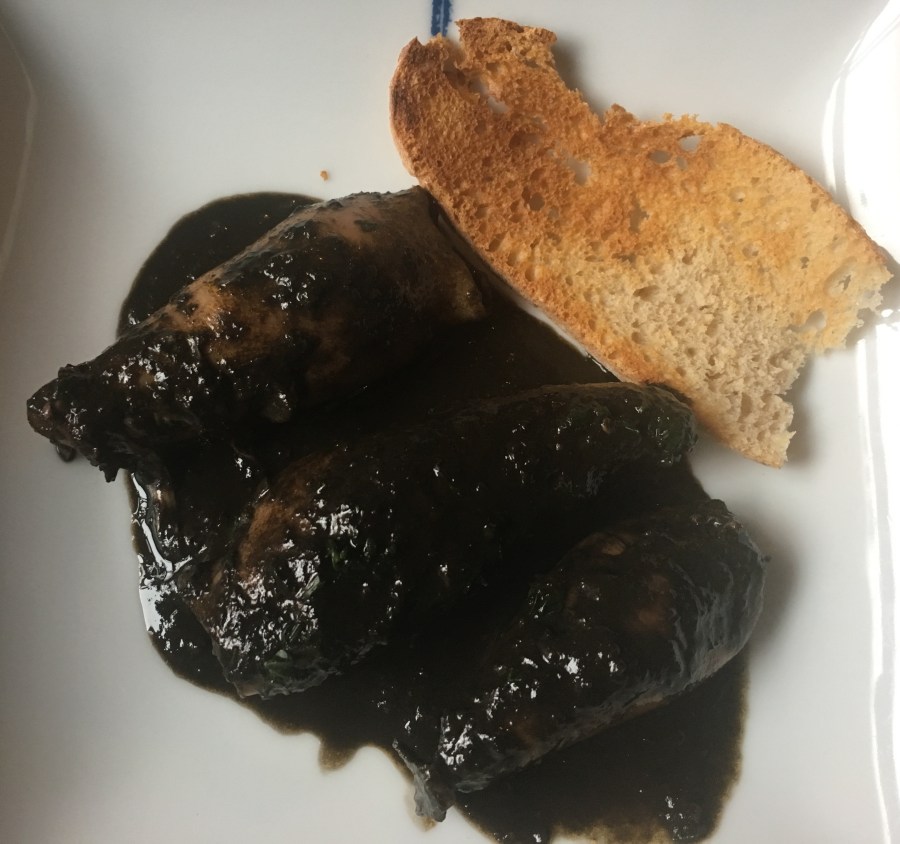 Chipirones rellenos en su tinta.