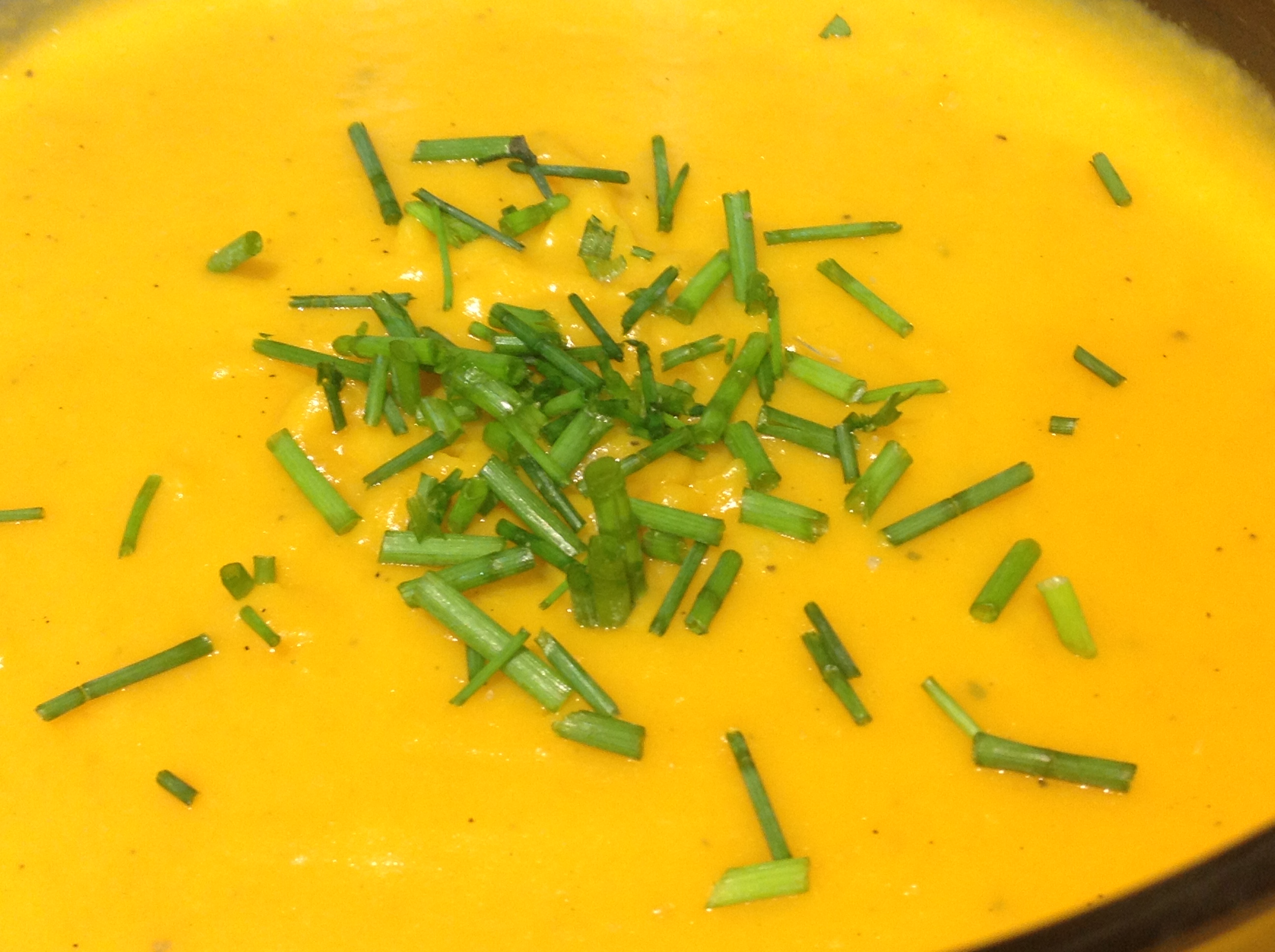 Menú de Navidad: Crema de calabaza y Lomo de merluza gratinado al vermú.