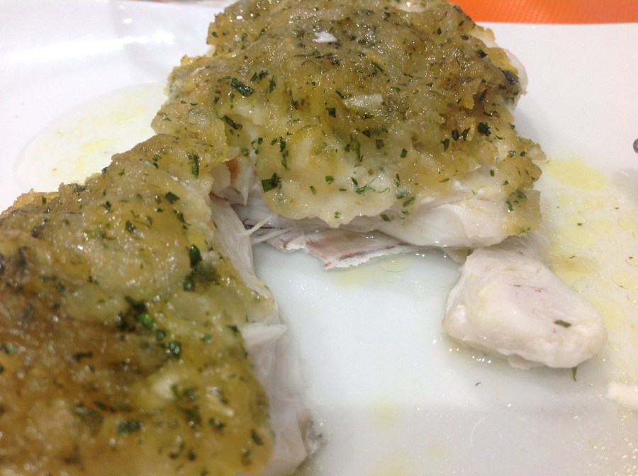Menú de Navidad: Crema de calabaza y Lomo de merluza gratinado al vermú.