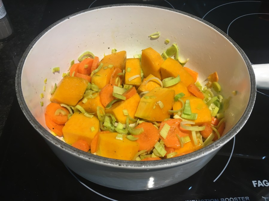Menú de Navidad: Crema de calabaza y Lomo de merluza gratinado al vermú.