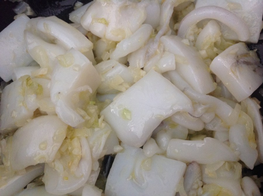 Patatas con sepia y chirlas.