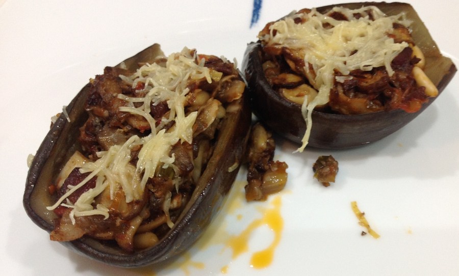 Berenjenas rellenas de boletus.