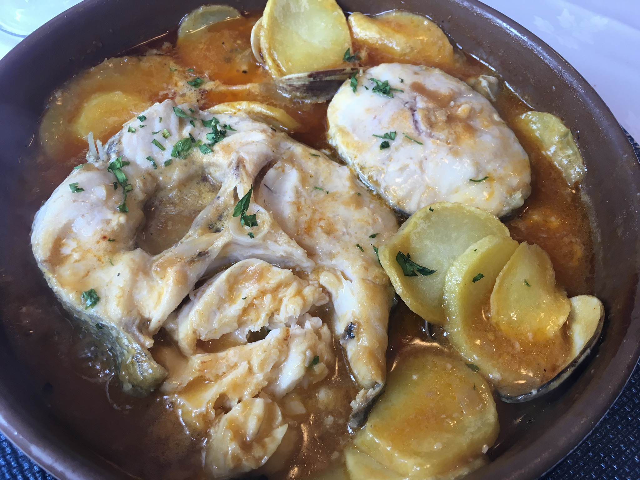 Conejo con setas, castañas y membrillos.
