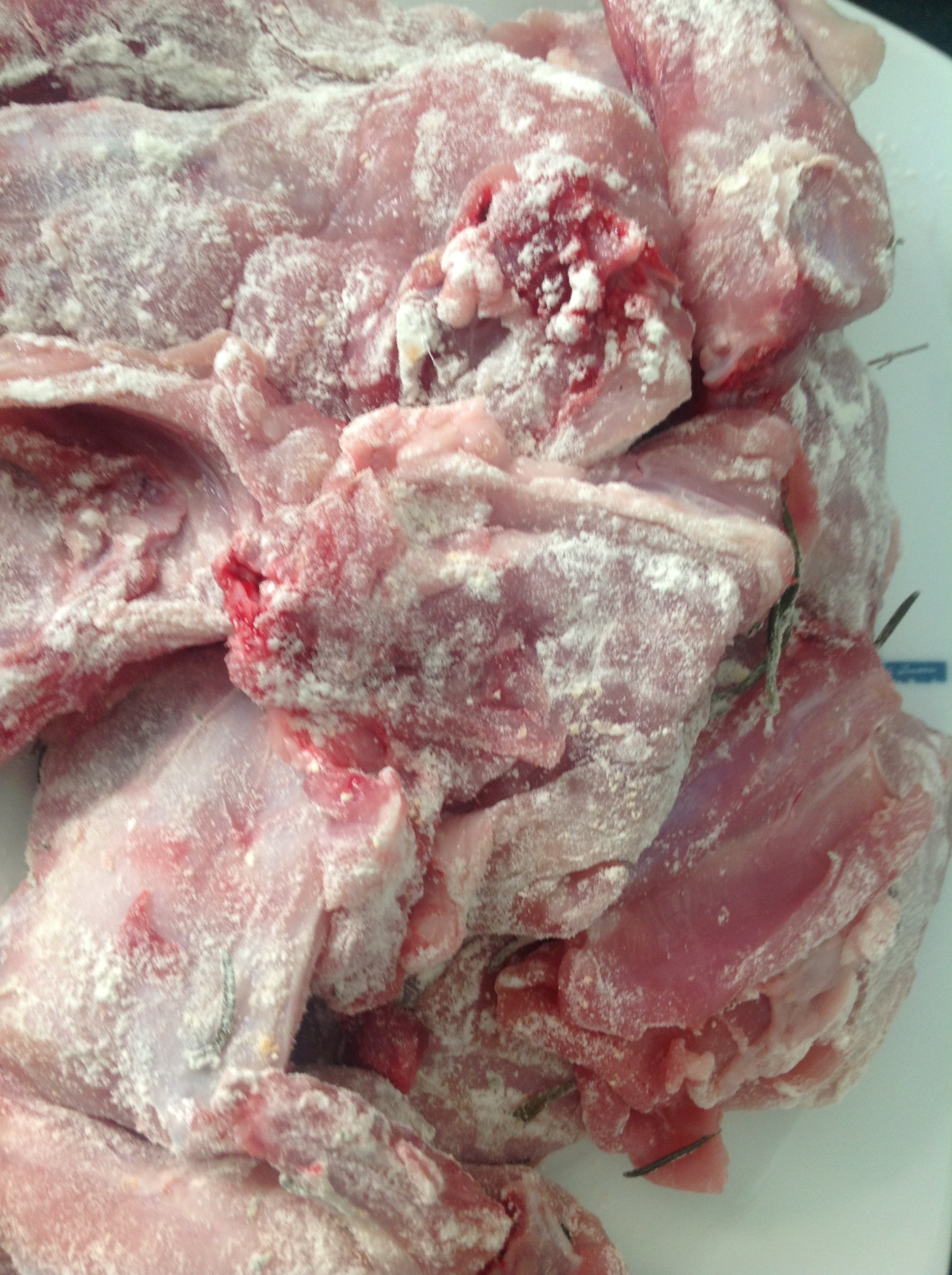 Conejo con setas, castañas y membrillos.
