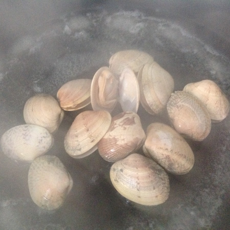Rape al txakolí con salsa de pimientos de piquillo y tres almejas.