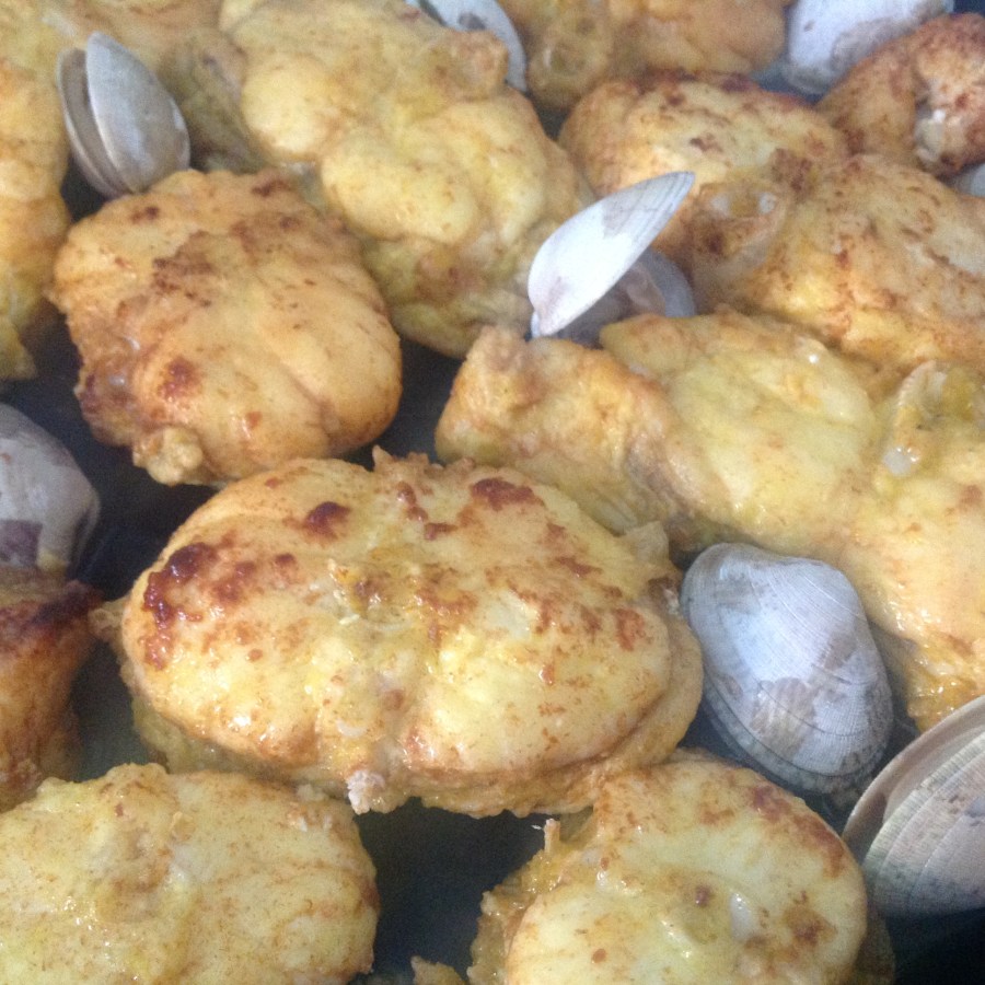 Rape al txakolí con salsa de pimientos de piquillo y tres almejas.